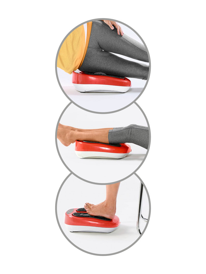 Mediashop Trainings- und Massagewunder 'VIBROLEGS'. Eine einzigartige Kombination aus Oszillation und Akkupressur für ein wohltuendes Erlebnis. Rotierende Akkupressur-Massageköpfe in Kombination mit Vibrationen verwöhnen Ihre Füße und können Verspannungen sanft lockern. Mit 4 Programmen und 10 Geschwindigkeitsstufen. Einfachste Handhabung per Knopfdruck dank selbsterklärender Fernbedienung. Die weichen Silikon-Fußpads sind abnehmbar und somit perfekt für eine hygienische und leichte Reinigung. Durch die kompakte Größe einfach zu verstauen. Fernbedienung mit Batteriebetrieb (2x AAA, Batterien nicht im Lieferumg enthalten)